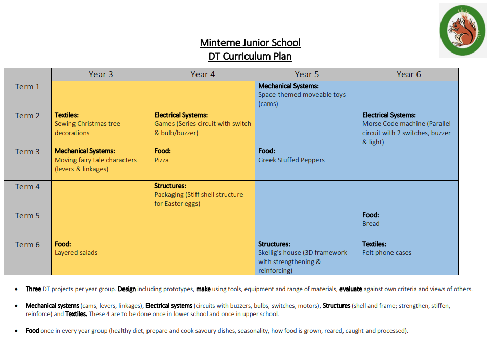 At Minterne, we want children to enjoy and look forward to their DT lessons. We encourage creativity and imagination through practical, hands-on activities. DT is often taught through class topics, with projects such as sewing Christmas decorations, cooking pizzas, building Viking longboats, and creating simple electrical buzzer games.
