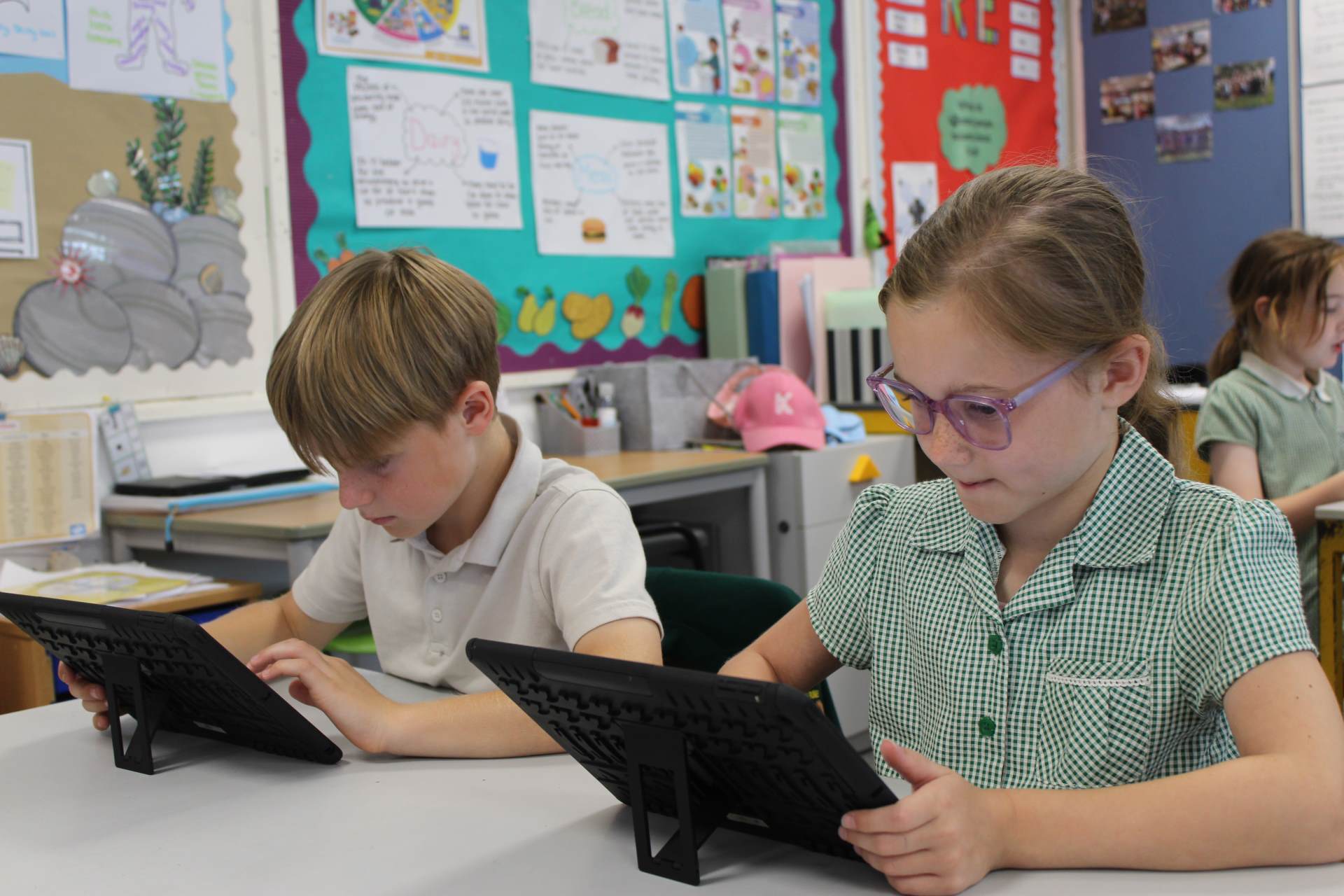 Libraries: Our colourful library is manned daily by our library assistants and is brimming with an extensive range of fiction, poetry, non-fiction and newspapers for the children to use and borrow. The children can visit the library at lunchtimes to borrow books and as a quiet place to enjoy a book. Class libraries / book corners are well-stocked with fiction books and children borrow them to take home for reading and use them for reading in class.