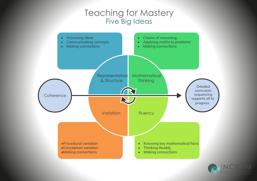 Mathematics is an interconnected subject in which pupils need to be able to move fluently between representations of mathematical ideas. The programmes of study are, by necessity, organised into apparently distinct domains, but pupils should make rich connections across mathematical ideas to develop fluency, mathematical reasoning and competence in solving increasingly sophisticated problems. Central to our approach are the ‘5 Big Ideas’ which underpin mastery in mathematics (representation and structure, mathematical thinking, variation, fluency and coherence).