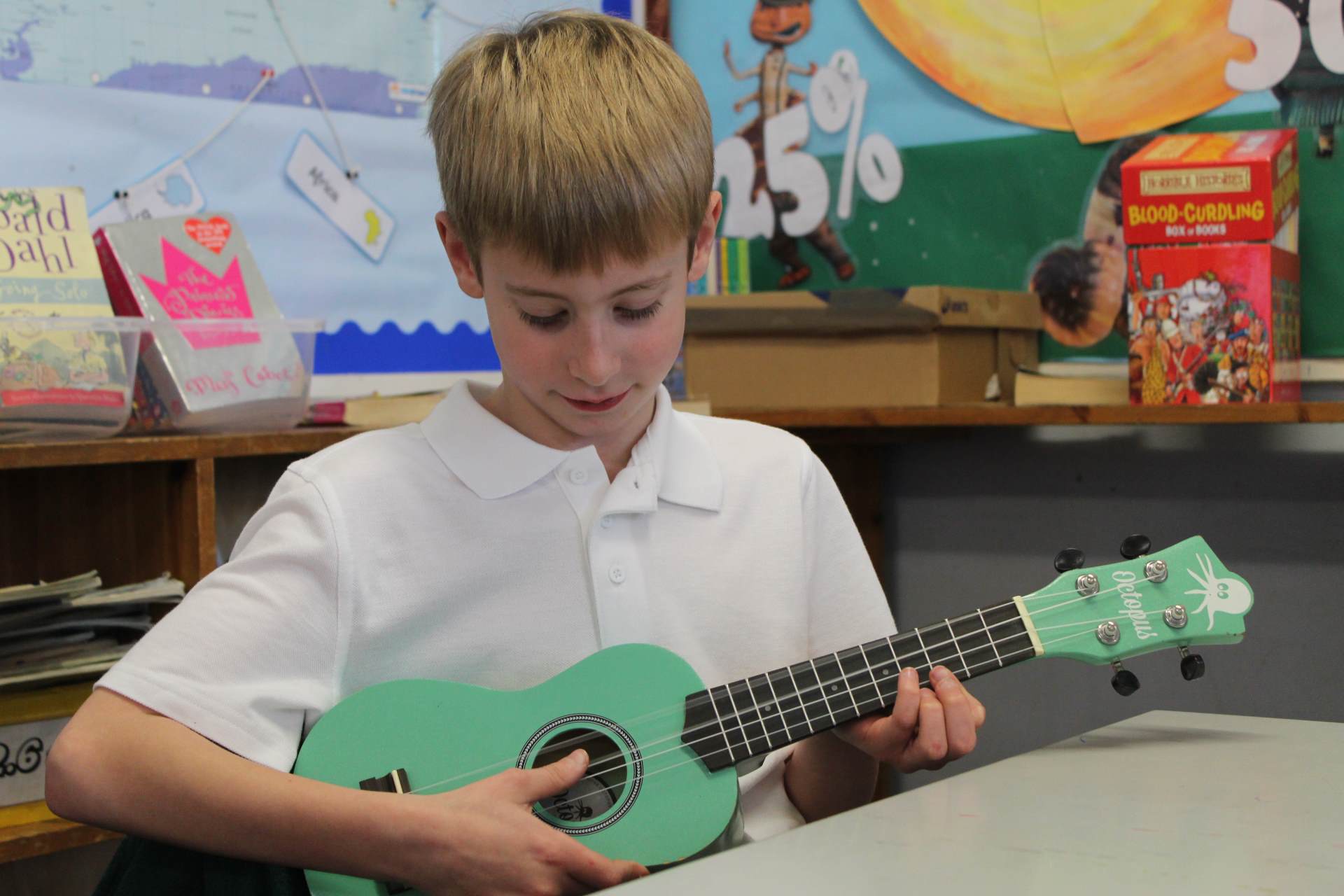 Currently, children in Year 3 are given whole-class instrumental tuition on the ukulele.