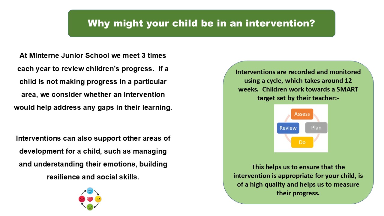 For some pupils who are requiring additional support to Minterne's 'universal offer' of support for all, in one or more of the 4 broad areas (communication & interaction, cognition & learning, social, emotional & mental health, physical & sensory) it may be necessary to add them to our SEND Register. The SEND Register is a dynamic list that children can be added to, or removed from, at any time and we will always liaise with parents regarding this. This fluidity reflects the pupil's development and progress as they move through the school as some pupils may only need additional support for a short period of time.